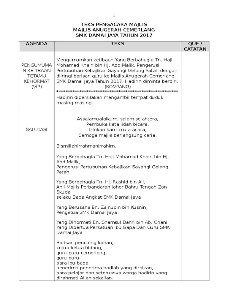 Teks Pengacara Majlis Hari Anugerah Cemerlang Pdf