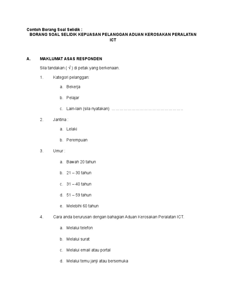 Contoh Borang Soal Selidik 2020 Banyak Contoh Portal Malaysia